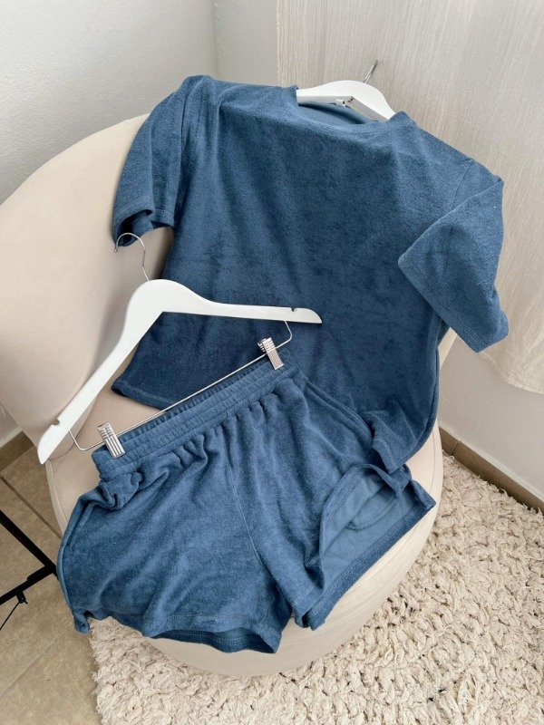 Conjunto de short y remera, de tela de toalla.