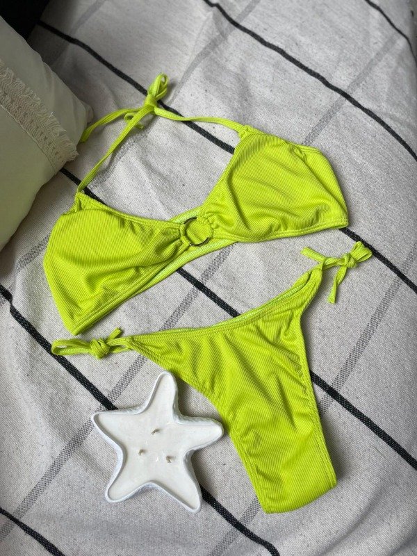 Bikini con aro, colaless de atar. Tela Morley de Lycra.