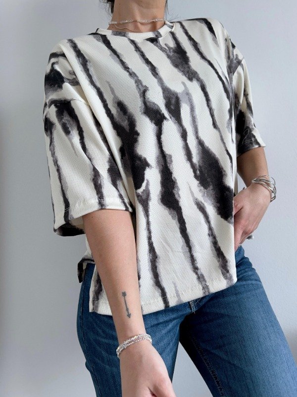 Remera de Morley de algodón estampada. Amplia estilo crop.