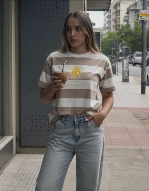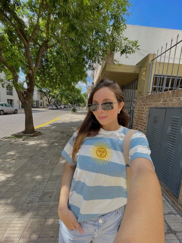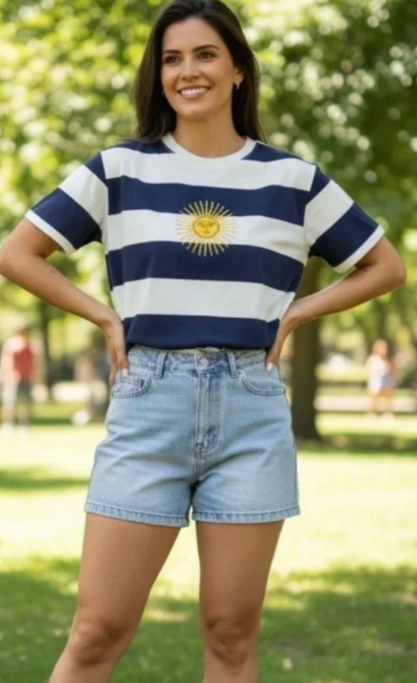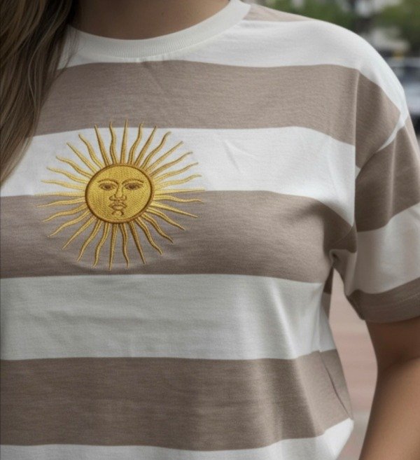 Remera de Jersey de algodón, con Sol de Mayo bordado, talle único, amplia, abarca hasta talle L.