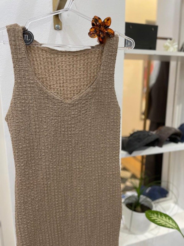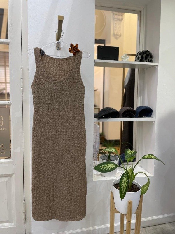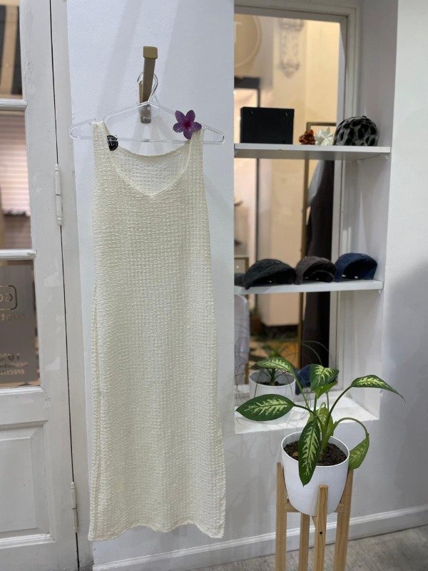 Vestido tela Hawaii, tajo a los costados, talle único, cede hasta un talle L.