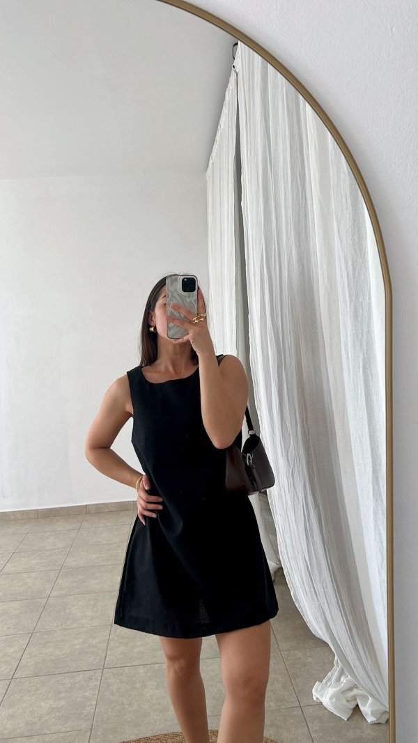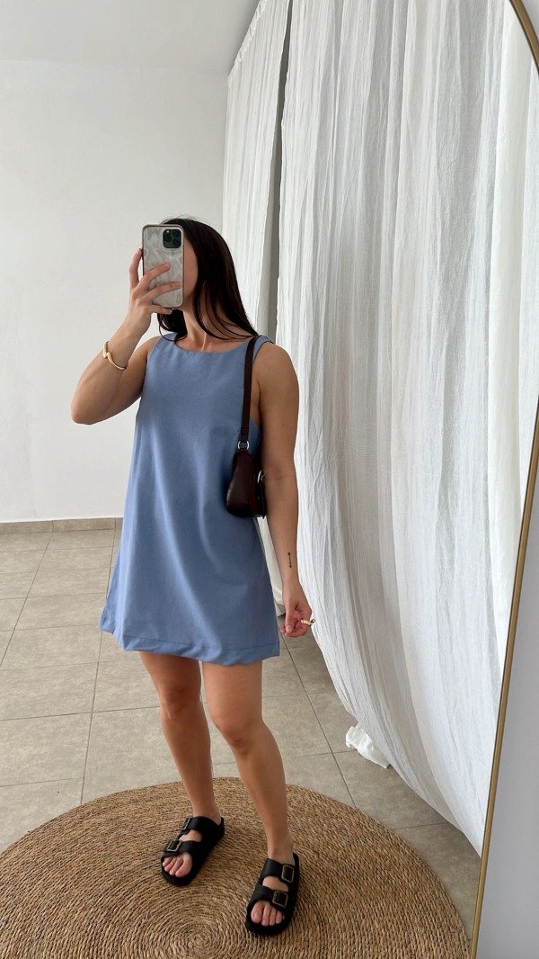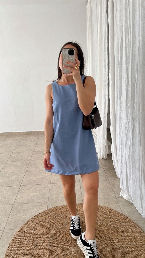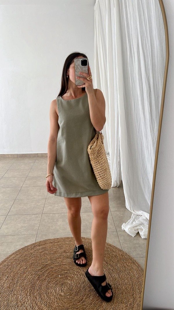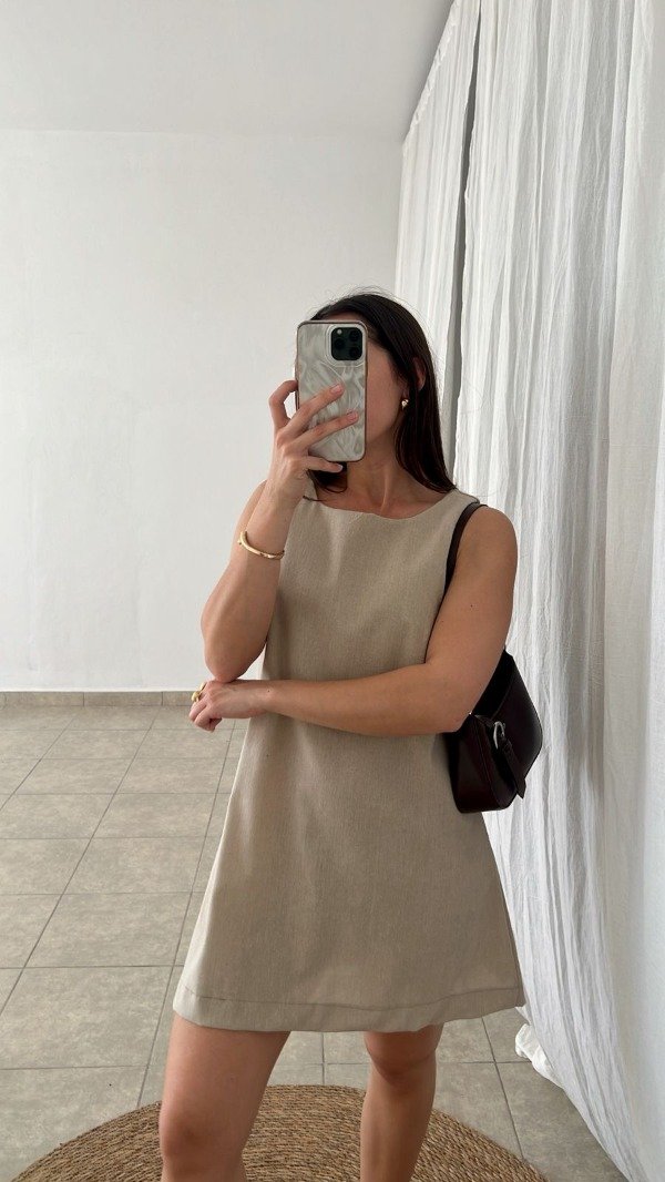 Vestido de Lino sastrero. Modelo exhibe talle 2.