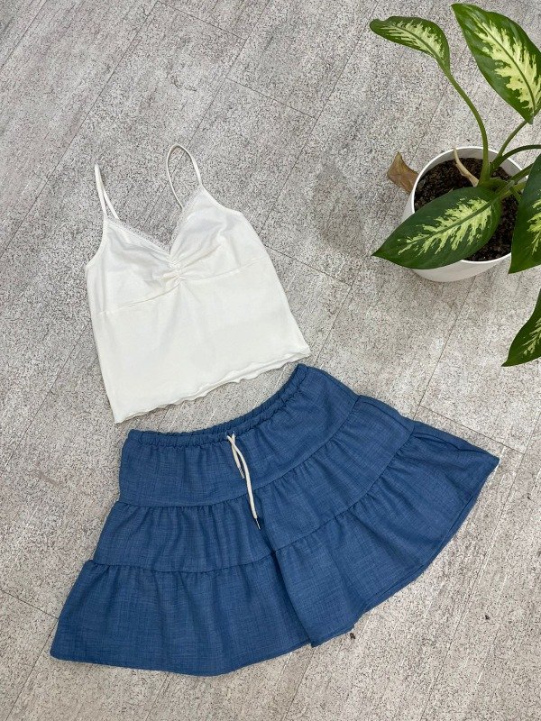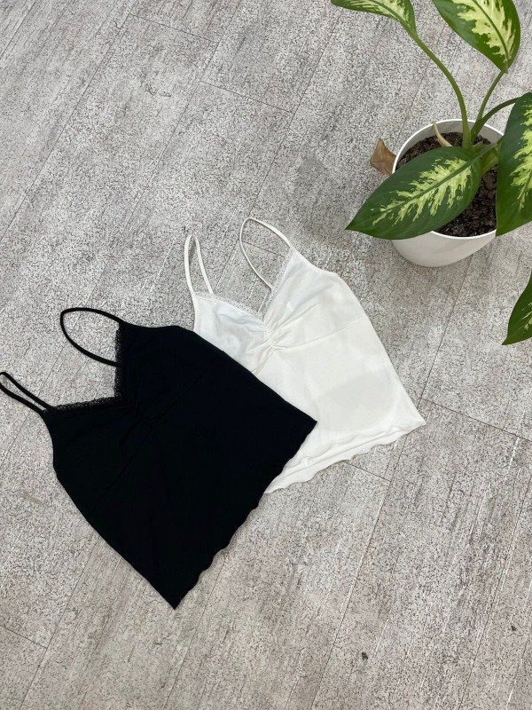 Musculosa de algodón con bretel y puntilla. Talle único, abarca S y M.