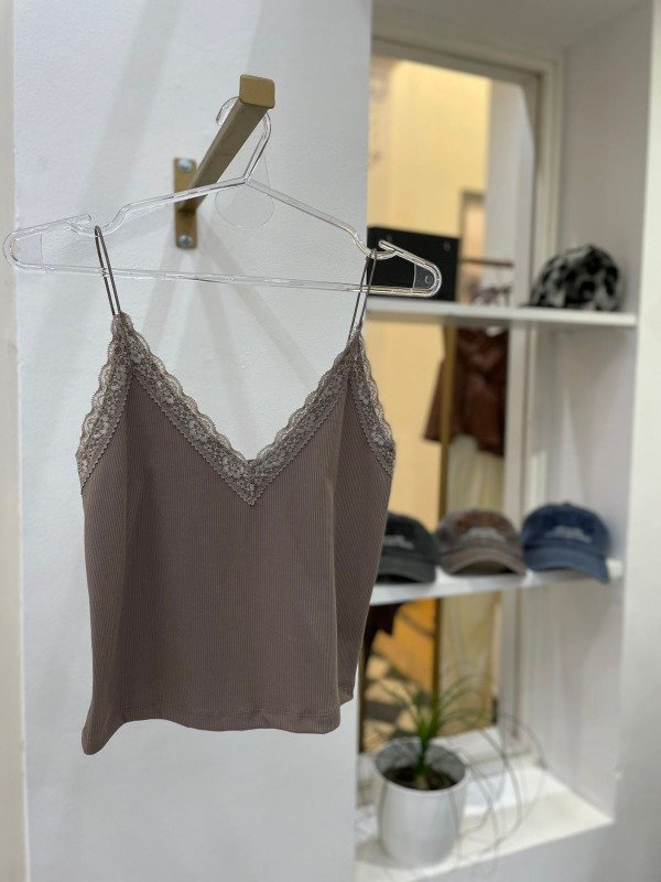 Musculosa de Morley con puntilla y bretel fino.