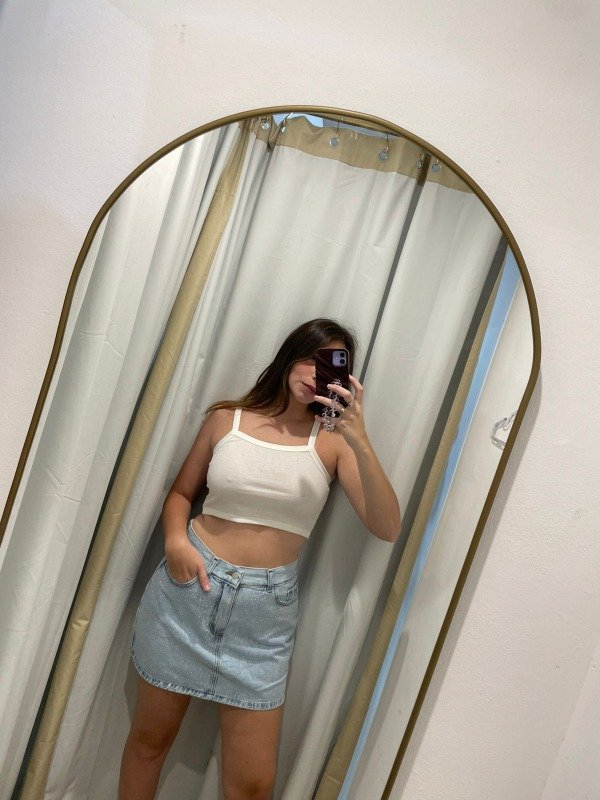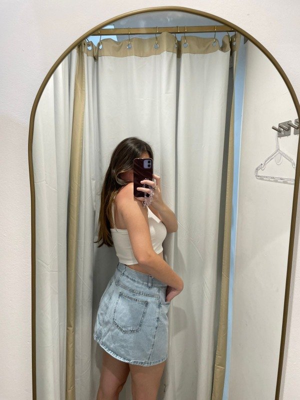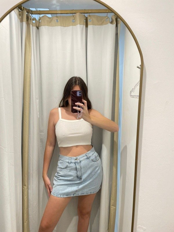 Pollera de jean claro, con Strass. Talles reales amplios.